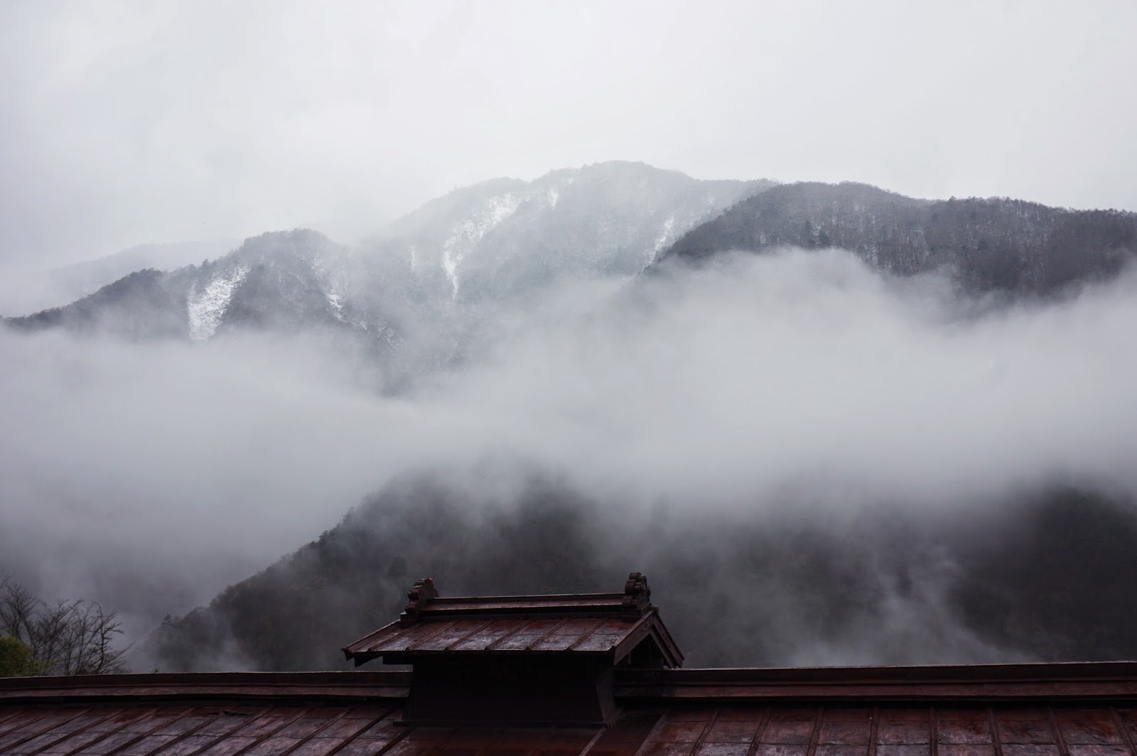 ここ最近寒さがぐっと厳しくなり、今日は赤沢宿、雪が舞っております。